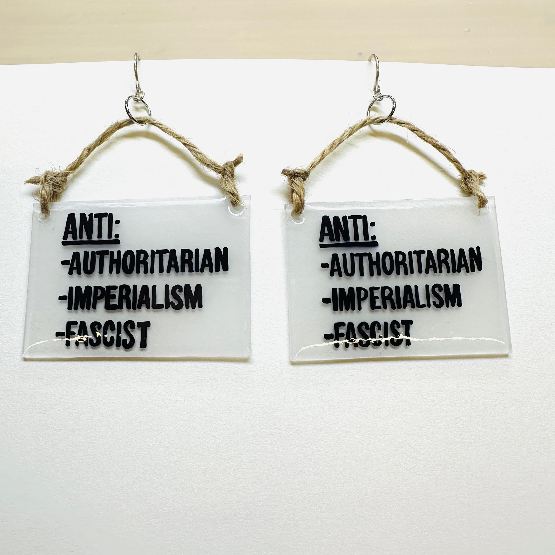 Made from Shrinky Dinks these earrings are ready to speak truth to power & help get you into good trouble.